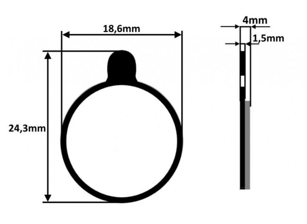 Ett par nya skivbromsbelägg som kan anpassas för stadscykel, hybridcykel, mountainbike, racercykel, elektrisk assisterad cykel (E-Bike, VAE, VTTAE), grus, trekking... beroende på typ av storlek.