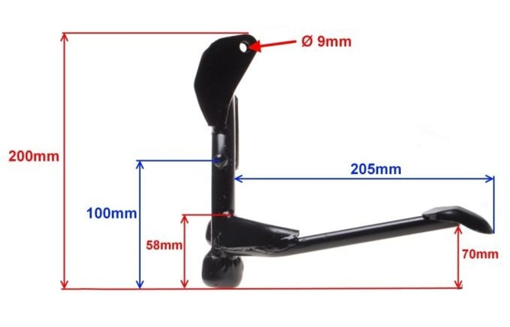 Artnr: 2690Centralstöd svart för många Kina 50cc fordon som bla Adly, Baotian, Jonway, Peugeot, SYM, Viarelli