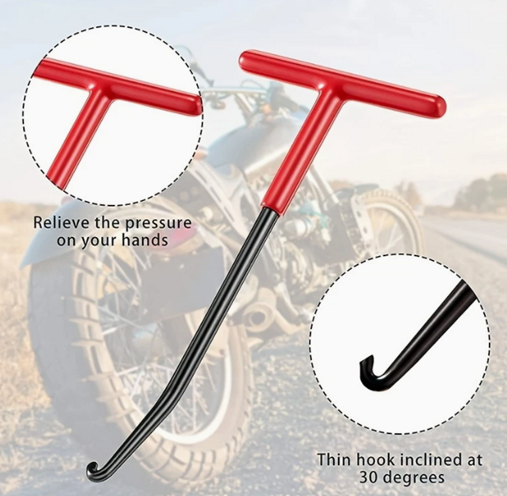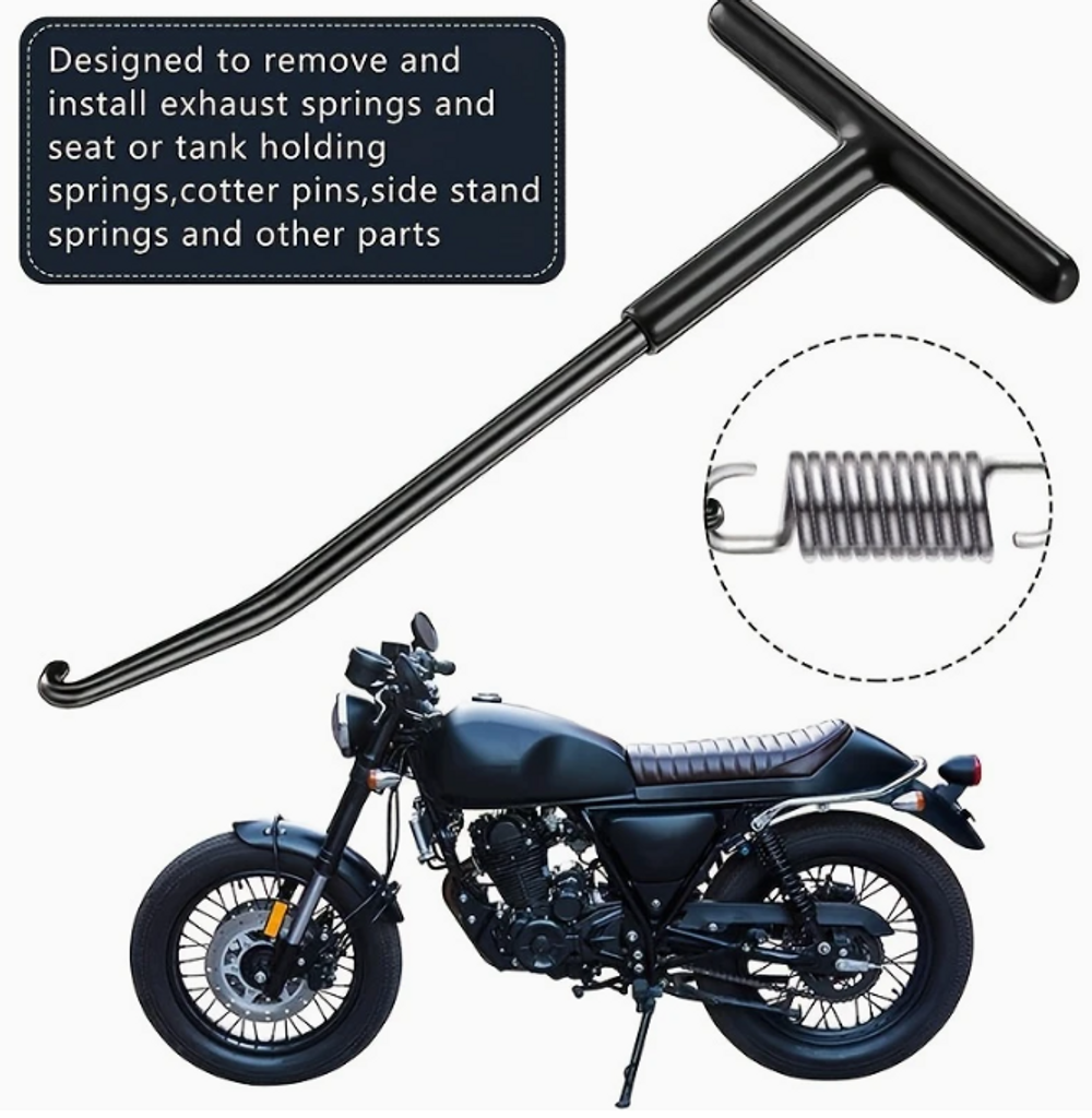 Artnr: 1252Ett mycket praktiskt verktyg som underlättar montering av fjädrar på tex centralstöd, sidostöd, avgassystem, koppling mm