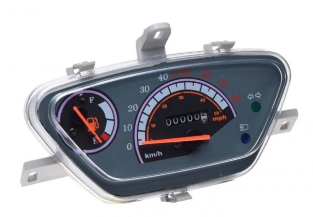 Artnr: 2607Hastighetsmätare till olika Kina Scooter 50cc med bla indikeringslampa till blinkers.