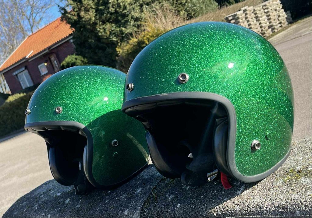 Artnr: 3639Special lackerade gröna flake hjälmar.