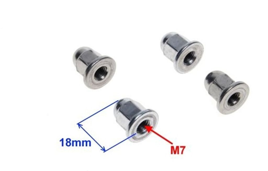 Artnr: 2643Kupolmutter set (4st) med krage M7 gänga till bla cylinder bultar.