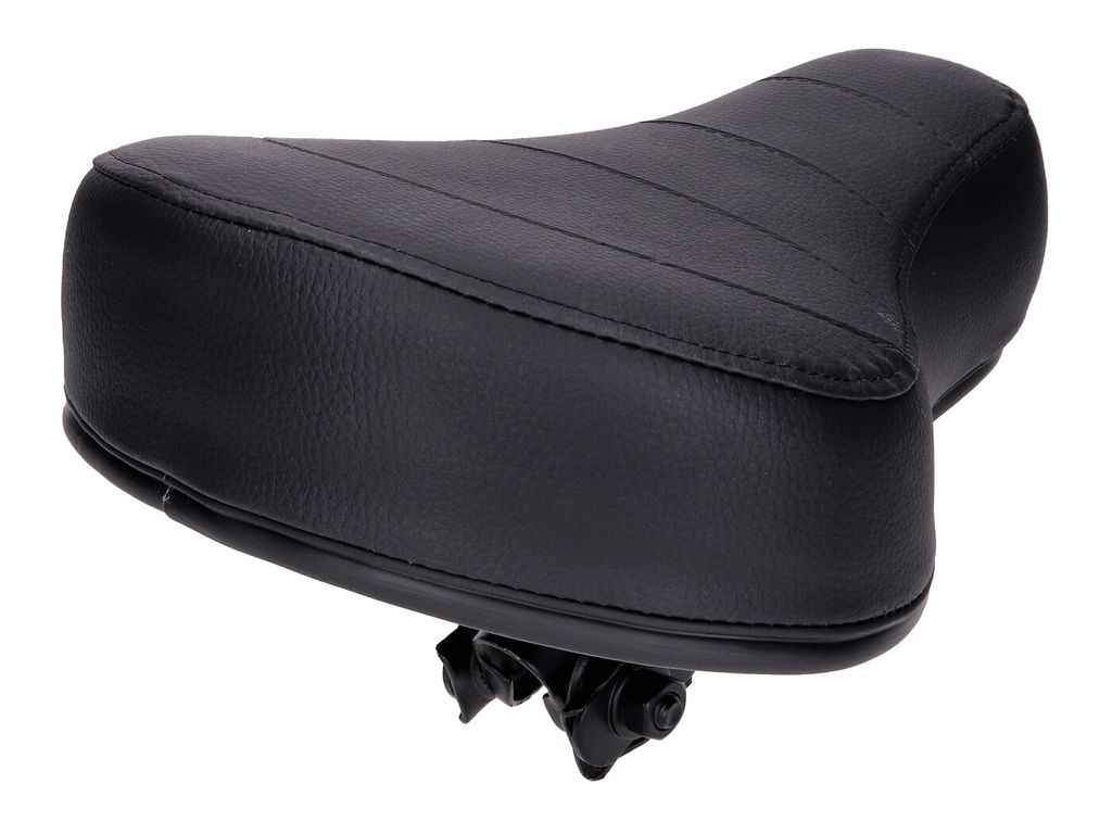 Artnr: 3091Fjäderbelastad sadel av svart syntetläder och 60mm höjd på sittdynan. Sitsen kan monteras på en moped med 22mm sadelstolpe.