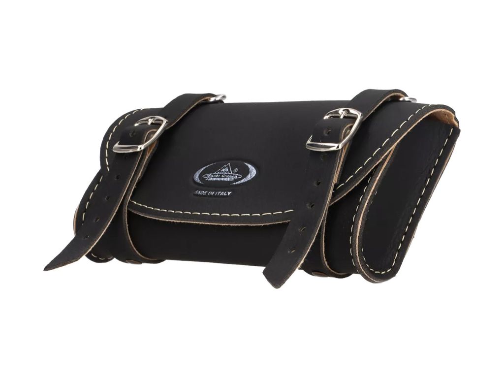Artnr: 3117Verktygsväska, sadelväska från Selle Monte Grappa tillverkad av läder i svart som passar till bla Piaggio, Vespa Ciao, Si, Bravo, Boxer, Grillo och olika mopeder med cykelliknande sadel