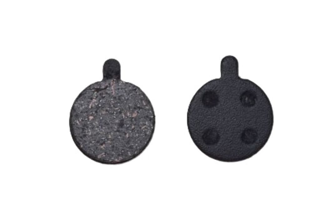 Ett par nya skivbromsbelägg som kan anpassas för stadscykel, hybridcykel, mountainbike, racercykel, elektrisk assisterad cykel (E-Bike, VAE, VTTAE), grus, trekking... beroende på typ av storlek.