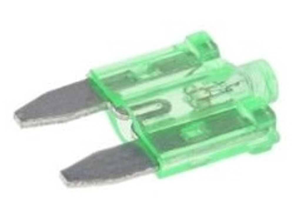 Flatstiftssäkring 30A 12mm med LED som lyser när säkringen är trasig.
