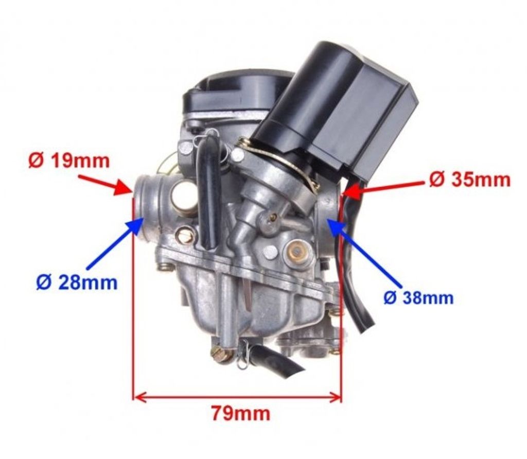 Artnr: 1283Förgasare CVK 19 mm insug och plastlock för äldre GY6 50cc 4 takt scooters med automatchoke.