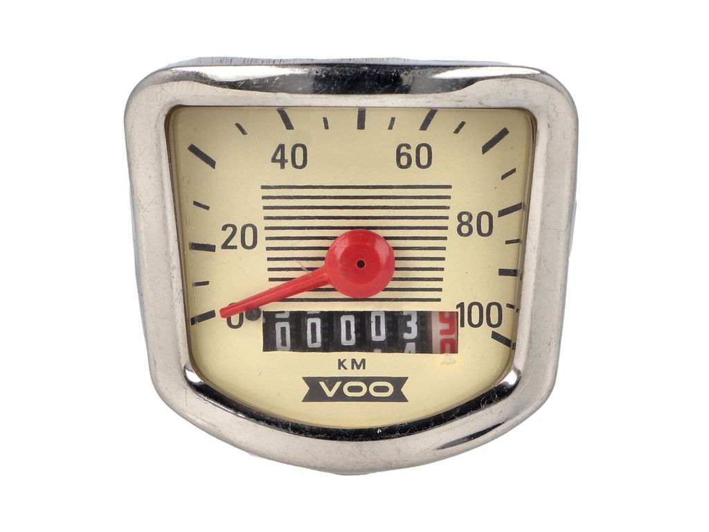 Hastighetsmätare VDO 100km/h mekanisk med vit hastighets mätartavla och trippmätare.
