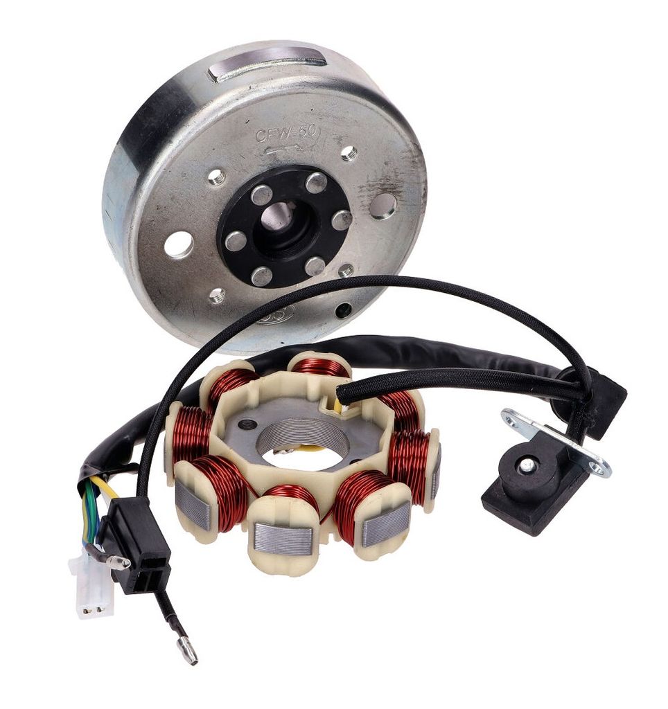 Artnr: 2296Komplett generatorsats (svänghjul, stator & pick-up) lämplig för 50cc Kina skotrar med GY6 (139QMB) 4-taktsmotorer Euro4.