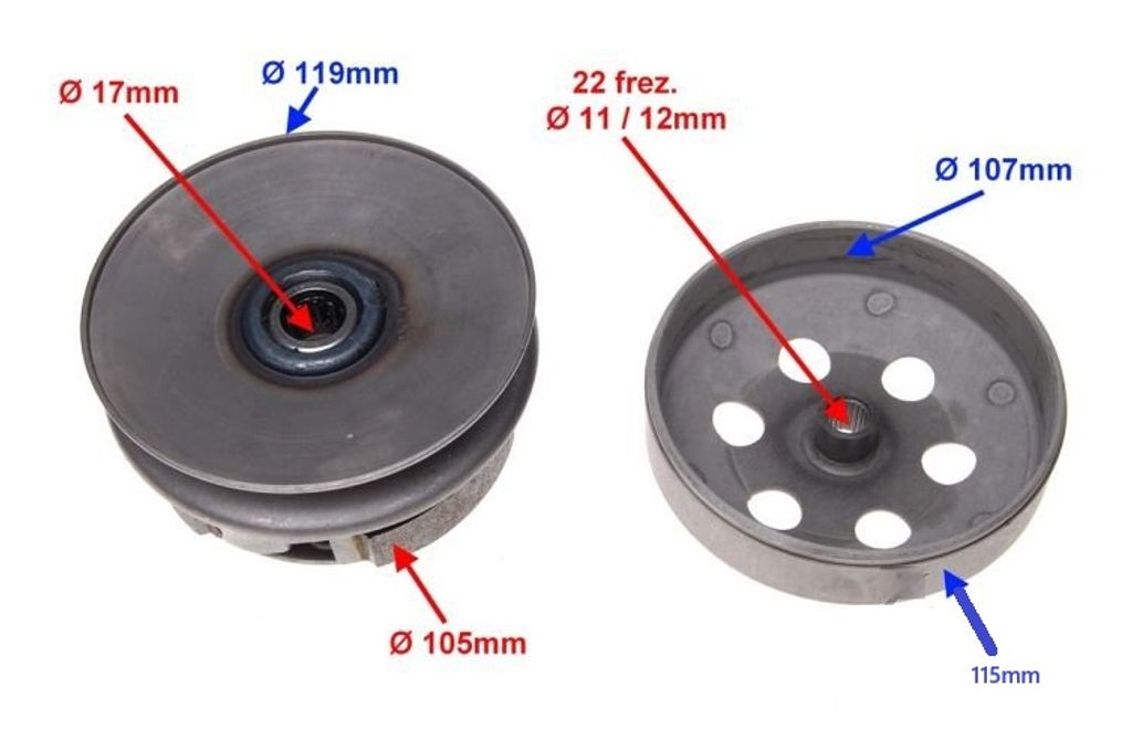 Artnr: 2654Variatorkoppling 107mm bakre komplett till många olika kina producerade scooters.