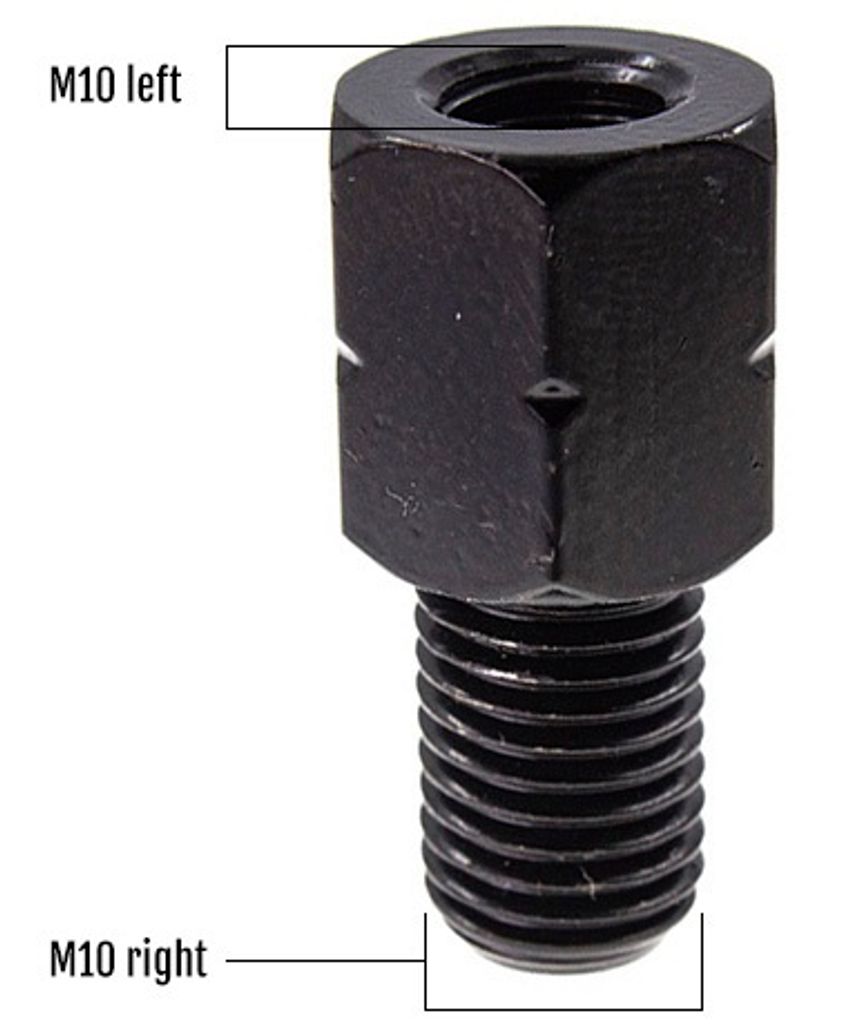 Adapter backspegel med M10 höger gänga som gör att du kan montera en backspegel med M10 vänster gänga.