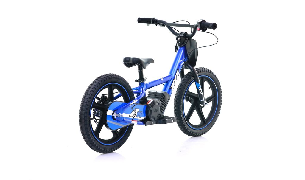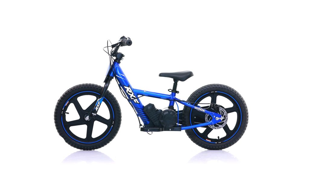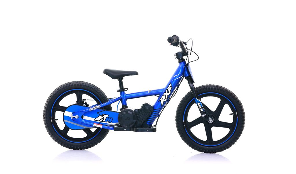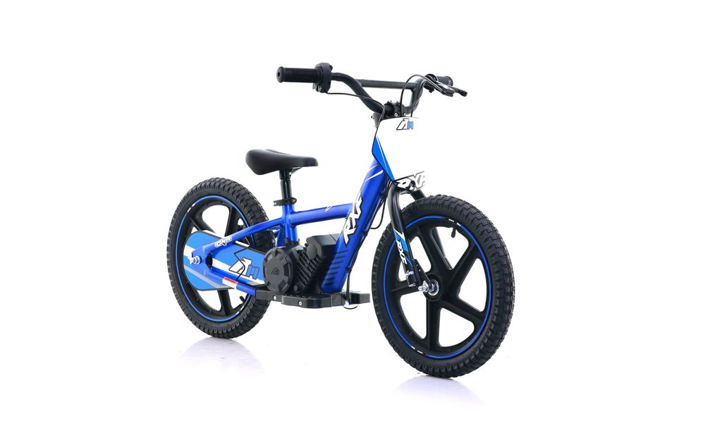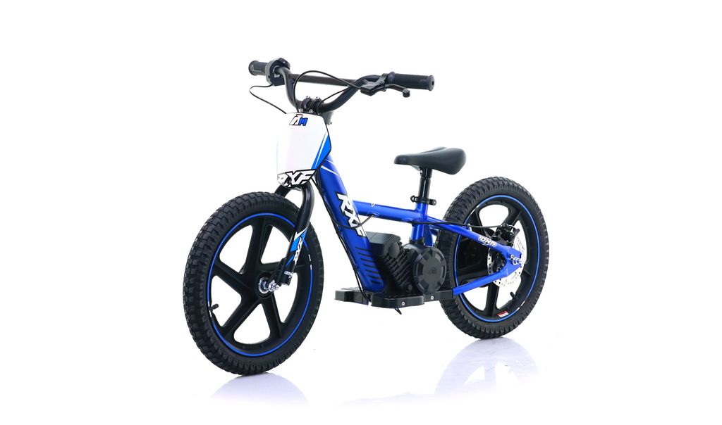Springcykel Apollo RFX DNA 16 tum med elmotor så barnet behöver inte kunna cykla, de kan springa med när elmotorn används.