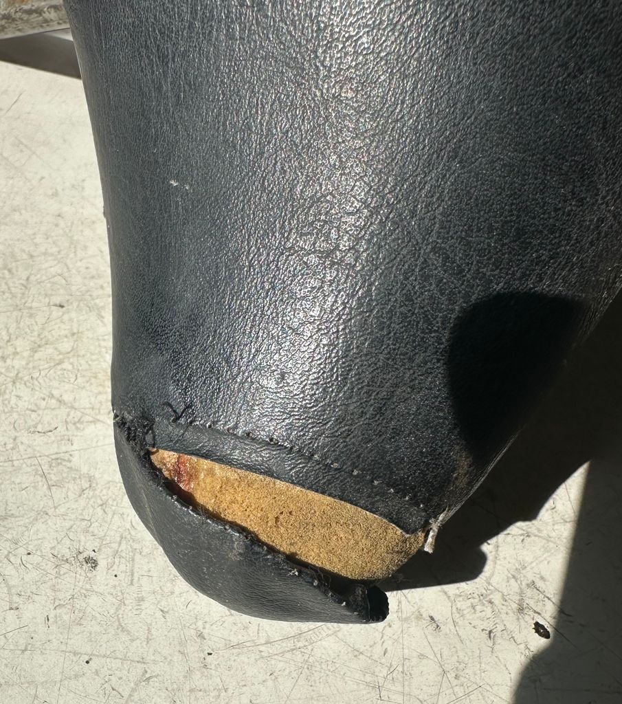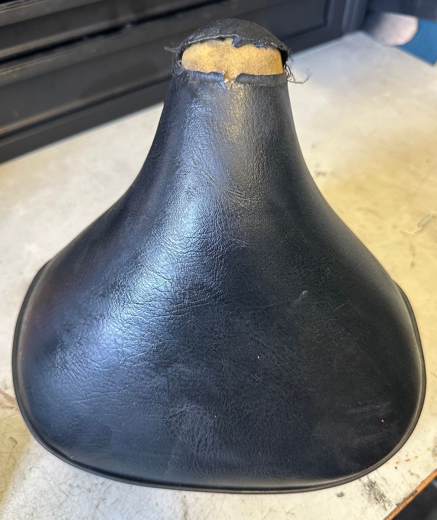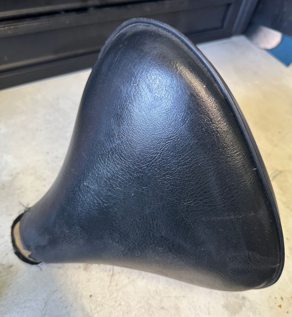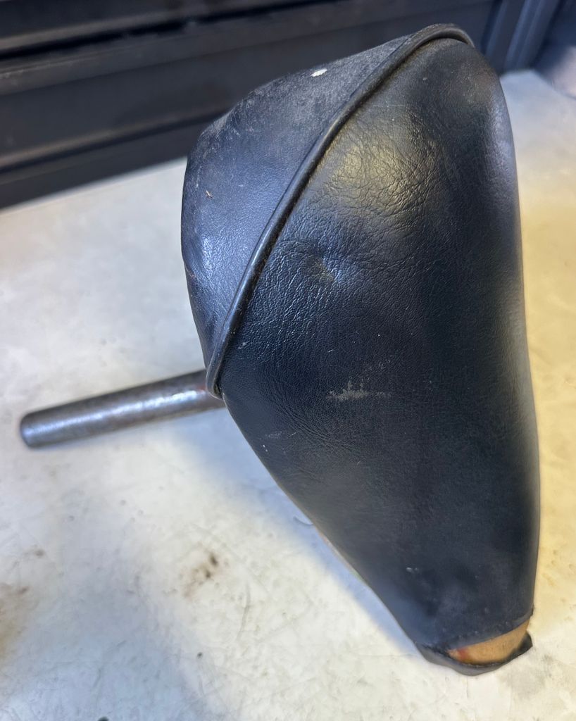 Artnr: 3623Sadel med sadel stolpe som suttit på en flakmoped.