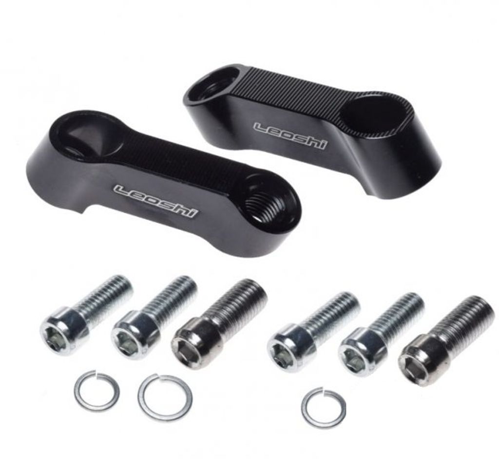 Artnr: 3524Stabil och diskret förlängare set i aluminium till backspeglar på motorcykel och moped.