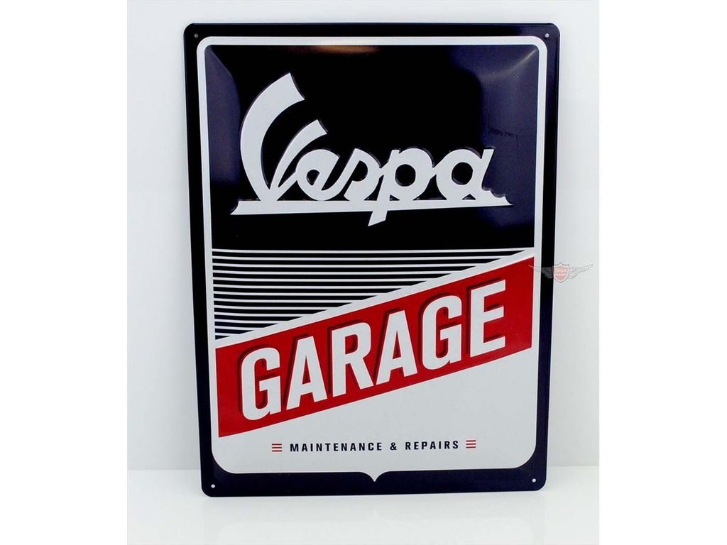 Artnr: 2109Plåtskylt "Vespa Garage" i hög kvalité.