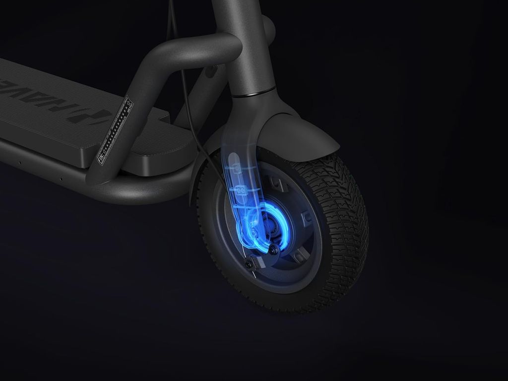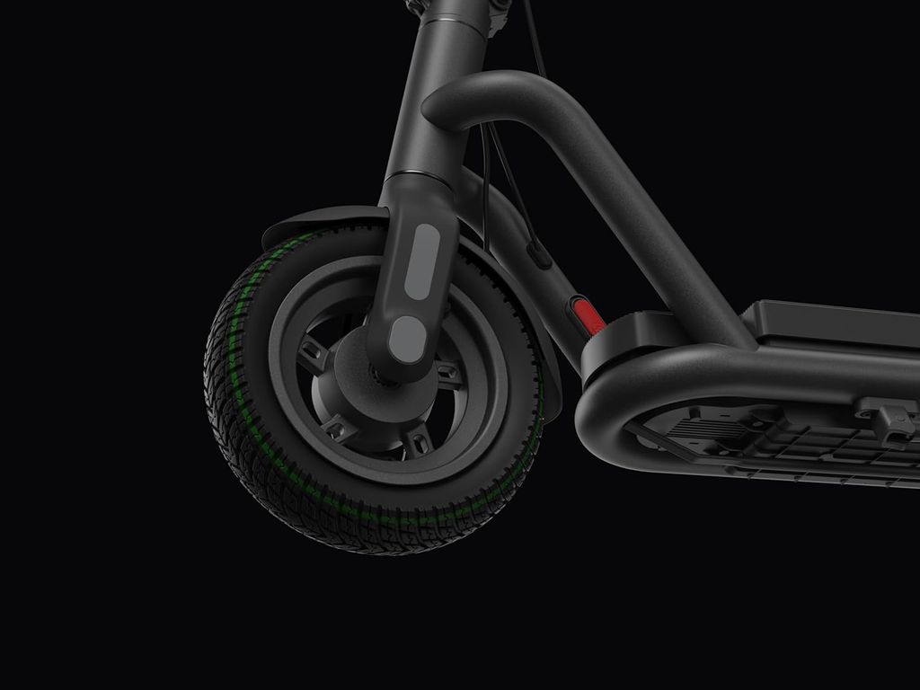 De 10,5 tum stora tubeless-däcken är 80 mm breda och utvecklade för att ge extra stabilitet och grepp. De luftfyllda däcken dämpar vibrationer effektivt och gör färden behagligare, även på ojämna underlag som kullersten eller grus. Med en markfrigång på 86 mm och en generös ståyta på 205 mm får du en bekväm körställning och förbättrad kontroll. Konstruktionen är inspirerad av SUV-konceptet – stabil, tålig och redo för varierande vägar.