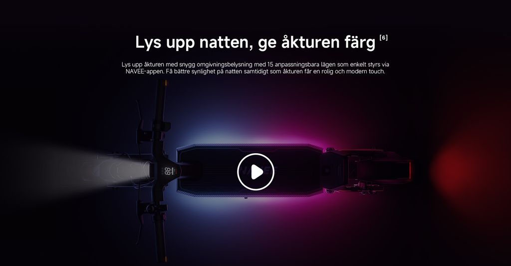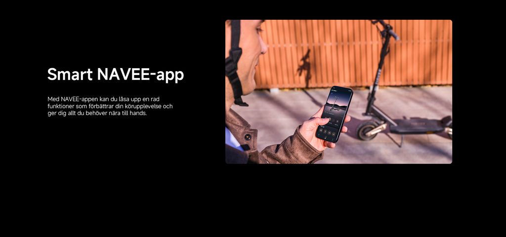Smarta funktioner och APP anslutning, med NAVEE-appen kan du enkelt följa prestanda, justera inställningar och hålla koll på batteristatus i realtid. Du kan även anpassa din elsparkcykel med 15 olika ljuslägen som förbättrar både designen och synligheten i mörker. ST3 Pro har även stöd för Apple Find My, så du alltid kan lokalisera din scooter om den försvinner. Med den smarta Bluetooth-upplåsningen låser scootern sig automatiskt när du går ifrån den och låser upp sig när du närmar dig, för både säkerhet och bekvämlighet.