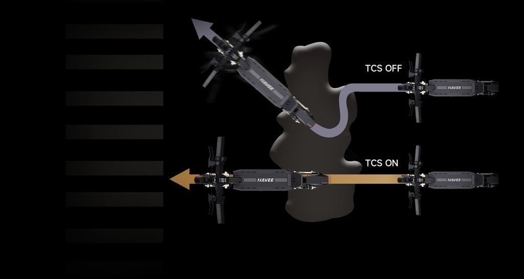 Med 25 % bättre vibrationskontroll än konventionella system får du en stabilare körkänsla. De 10” slanglösa däcken ger utmärkt grepp och slitstyrka, och tillsammans med det automotive-klassade TCS-systemet får du maximal kontroll även på våta eller hala vägar.