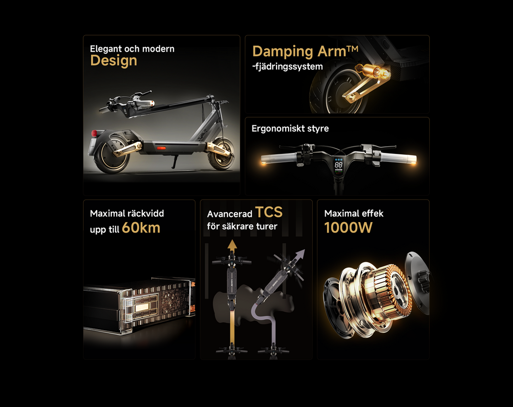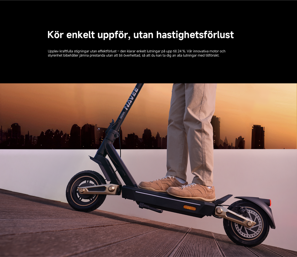 Navee ST3 är en trafikgodkänd elsparkcykel byggd för både kraft och komfort. Med en 250W motor, avancerad Damping Arm™-fjädring och robusta 10” slanglösa däck erbjuder den en jämn och stabil körupplevelse. En räckvidd på upp till 60 km, fordonsklassat litiumbatteri och energieffektiv återladdning säkerställer långvarig prestanda. Det tredubbla bromssystemet garanterar säkra inbromsningar, medan funktioner som Bluetooth-upplåsning, Apple Find My och NAVEE-appen gör ST3 till en perfekt följeslagare för både daglig pendling och längre turer. Denna produkt har IP-klassning IPX5