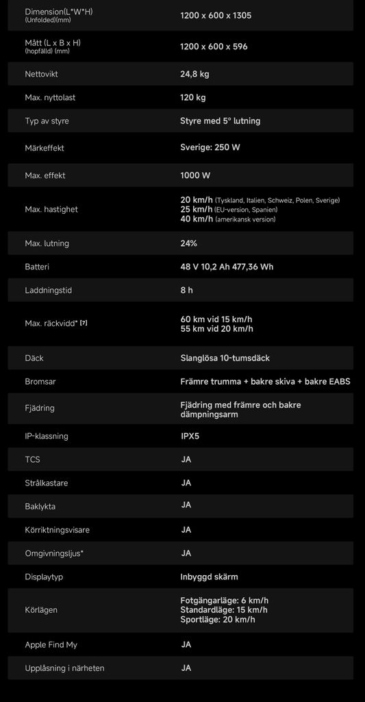 Hållbar konstruktion för året runt-bruk, tillverkad i fordonsklassat höghållfast SPCC T1.5-kolfiberstål är ST3 konstruerad för att hålla. Den klarar en maxbelastning på 120 kg och erbjuder exceptionell slitstyrka och stabilitet. Trots sin robusta konstruktion väger scootern endast 24,8 kg och kan enkelt fällas ihop för transport och förvaring. Med IPX5-vattentäthet är ST3 redo att möta både regn och rusk, vilket gör den till ett pålitligt val för daglig pendling året runt.