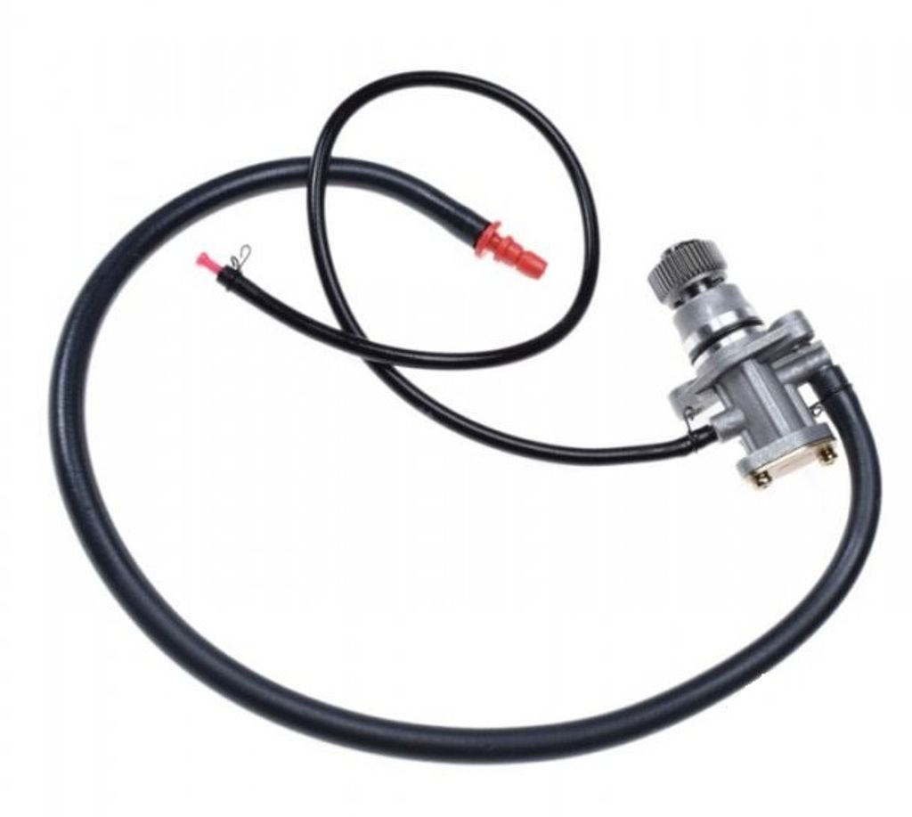 Urluftning: Lossa urluftningsskruven på oljepumpen låt olja rinna ur tills inga luftblåsor finns kvar. Fyll på extra 2-taktsolja direkt i bränsletanken ungefär 0,3 dl per liter bensin. Detta för att undvika skador på motorn om det finns luftblåsor i oljetrycksslangen mellan oljepumpen och förgasaren. Extra 2-taktsoljan direkt i bränsletanken behövs bara göras en gång och under de första milen.