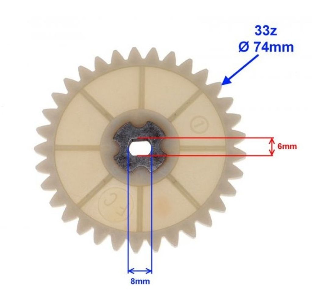 Artnr: 3095Oljepumps drev 33kuggar för GY6 4-takt 50cc som har vevaxel med 16 kuggars oljepumpsdrev