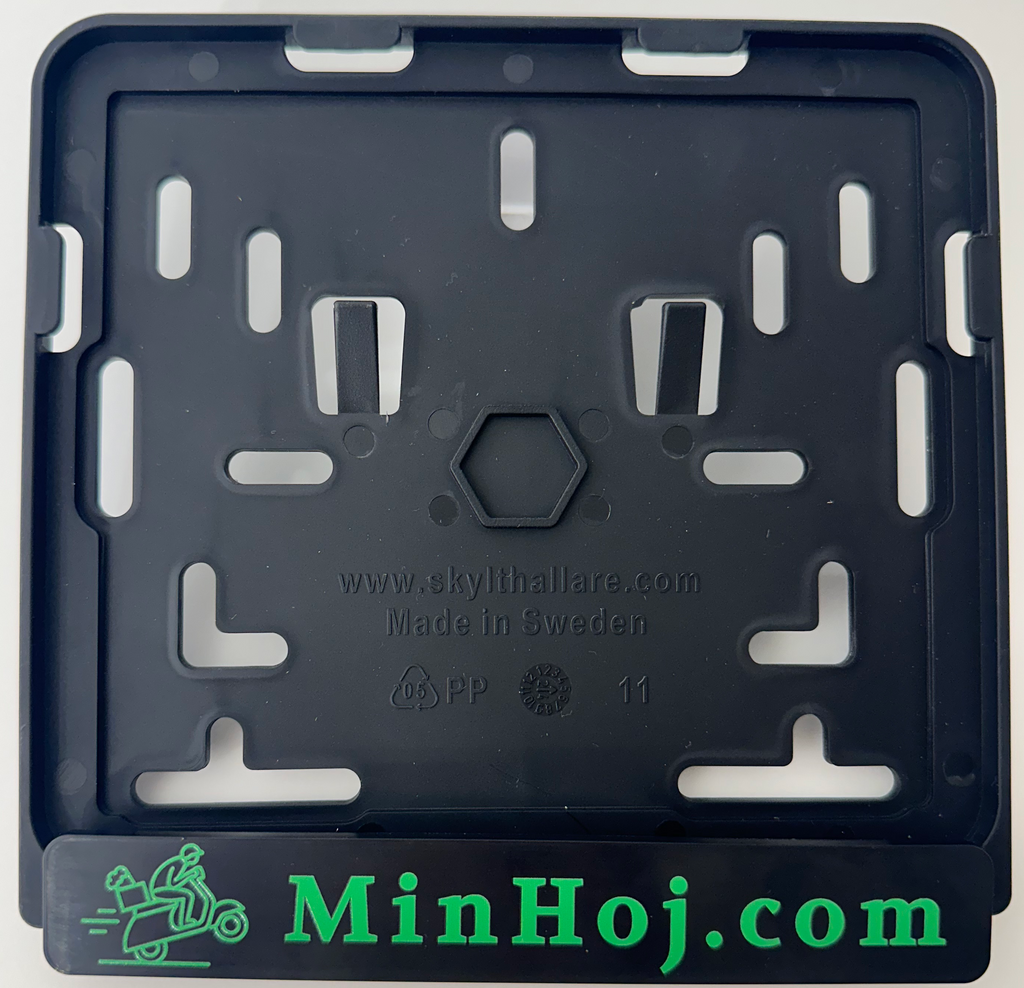 Skylthållare MinHoj.com för motorcykel och moped av svensk standard storlek för MC från 2014 (170 x 150 mm) med för borrad hålbild för universal passform.