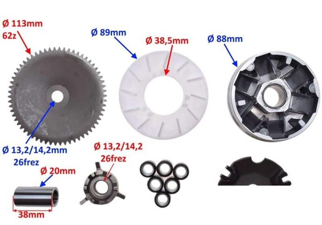 Variatorkoppling främre inklusive 7g vikter till bla Kymco, PGO