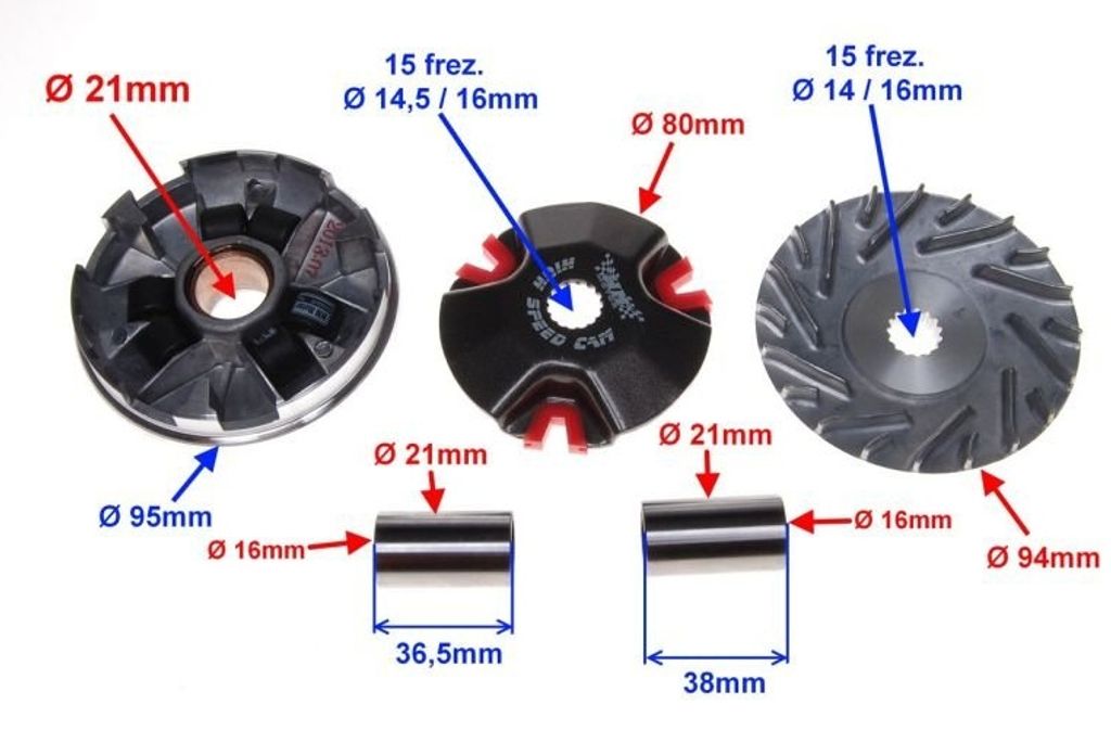 Artnr: 2657Variatorkoppling racing främre inklusive 3,5g och 7,0 grams vikter till bla Baotian, Viarelli, CPI, Keeway, Sachs